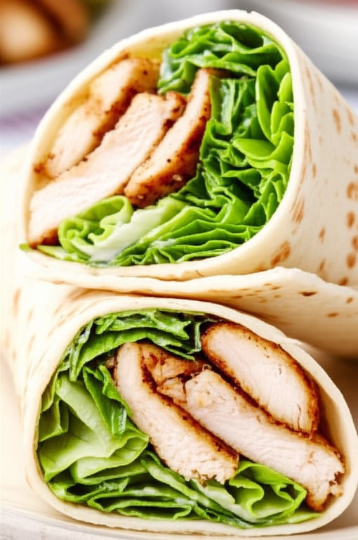 A quick and easy lunch or light dinner featuring grilled chicken, crisp romaine lettuce, and creamy Caesar dressing all wrapped in a soft tortilla.