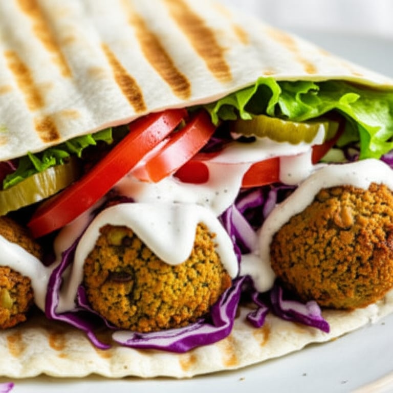 A flavorful and satisfying vegetarian wrap filled with crispy falafel, fresh vegetables, and creamy tahini sauce.