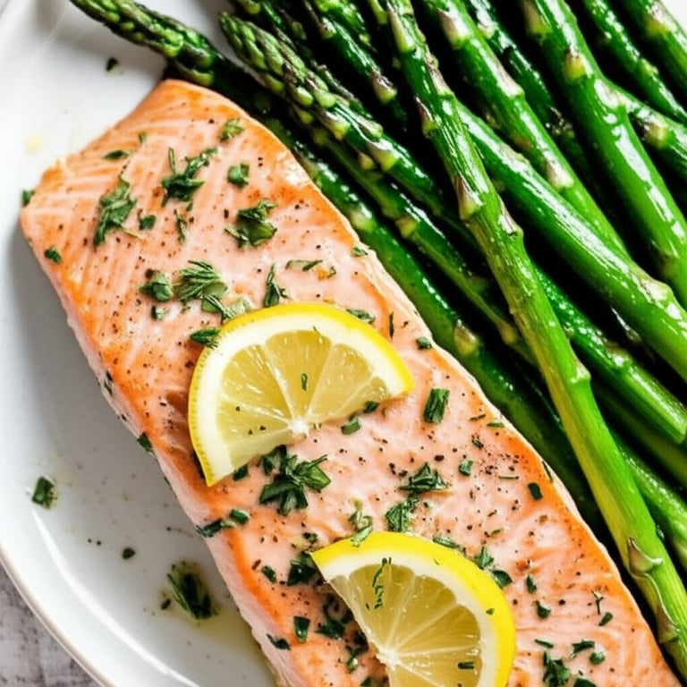 A quick and easy weeknight dinner featuring flaky salmon and tender asparagus, infused with bright lemon and fresh herbs.